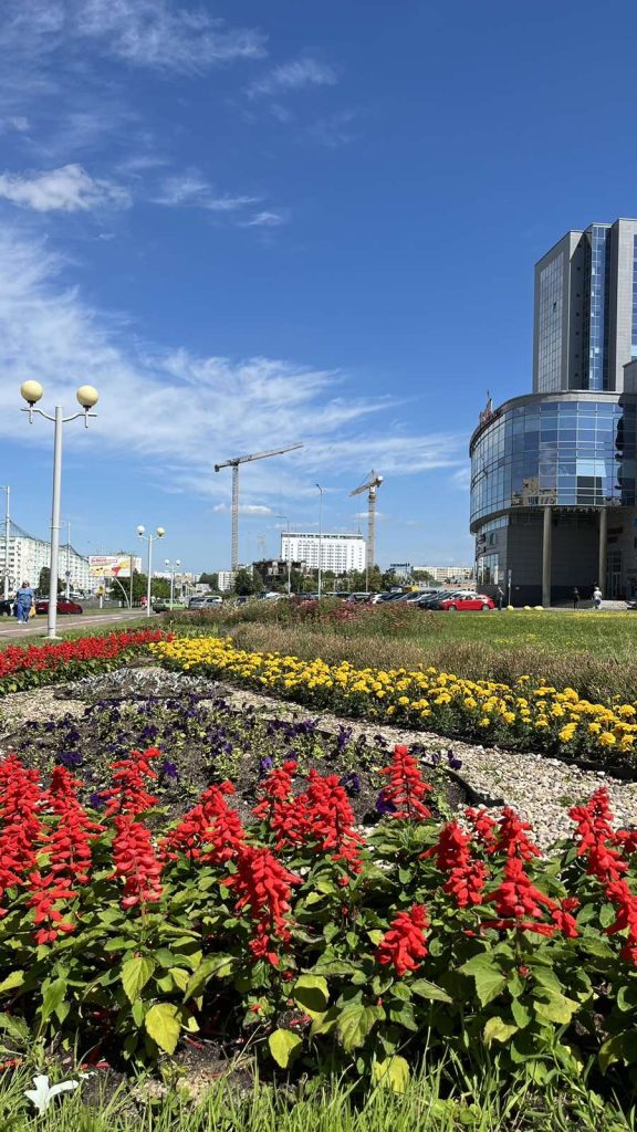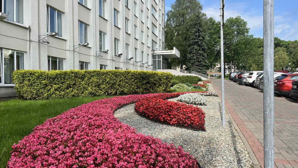 УП «Зеленстрой Фрунзенского района» выполняет работы по текущему содержанию (устройство газонов и пешеходных связей), благоустройству и цветочному оформлению объектов зеленого хозяйства.